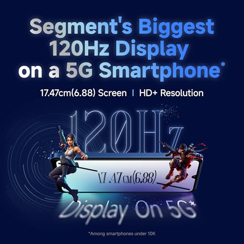 • High performance Snapdragon 4 Gen 2 5G Processor Large 17.47cm 120Hz Display Upto 8GB RAM including 4GB Virtual RAM 128GB Storage Fast Side fingerprint sensorDisplay Large 17.47 cm 120Hz Refresh Rate display 600nits peak brightness 240Hz Touch sampling Rate TUV triple certified eye care protectionCamera 50MP Dual camera 5MP Front camera5160mAh(typ) battery with 18W fast charging support and 33W charger in box with USB Type CExpandable Storage to upto 1TB with Dedicated MicroSD card Slot 3.5mm headphone jack Android 14 Side fingerprint sensor